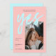 Um moderno Cartão Guardar a Data com uma nova paleta de cor néon verde e rosa da casa da moeda, com um grande e negrito Script de Caligrafia para Sim e sua imagem de escolha. Todas as cores desta Modelo de Salvar Foto podem ser alteradas! Um barato exclusivo, mas Salve o Convite de Data para casais modernos.