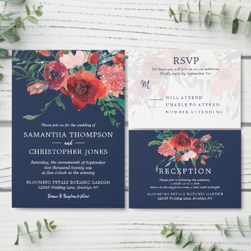 Navy Blue Coral Burgundy Floral Watercolor WeddingCriado por Christine F