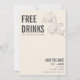 Seus hóspedes não conseguirão resistir ao sorriso quando receberem esse cartão de data por tipo, salve o cartão no correio. É a maneira ideal de dizer a eles que seu casamento é sobre alegria, companhia de excelentes e celebração. Estes cartões salve a data engraçados leram "Bebidas grátis (e vamos nos casar)". Adicione sua foto, nomes, data do casamento e local.