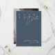 Elevem a antecipação de seu dia especial com nossa Simples Opulência Azul Real e Casamento Fotográfico Moderno Branco Salvem os Cartões de Data. Incorporando simplicidade e elegância, essas cartas misturam sem problemas uma design limpa e minimalista com o toque pessoal de seus momentos queridos capturados em uma foto real azul e branca. A estética escura da sofisticada paleta adiciona um toque de atração no inverno aos elementos modernos e tradicionais, criando um anúncio de chic e eterno. Cada carta é uma fusão harmoniosa de simplicidade e grandiosidade, oferecendo uma declaração minimalista, mas impactante, que encapsula maravilhosamente a essência do seu próximo casamento.