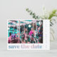 Traga energia ousada ao seu anúncio de casamento com este cartão colorido Salve a Data! Com sua foto e a tipografia moderna de gradiente, esta design é perfeita para casais divertidos que querem fazer uma primeira impressão memorável. O layout vertical da data e os detalhes sans-serif limpos dão uma sensação nova e editorial. Ideal para casamentos ou casais divertidos e não tradicionais que amam cor e criatividade. Todos os textos e fotos são totalmente personalizáveis para corresponder ao seu estilo exclusivo.