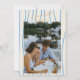 Este casamento colorido e moderno e retro, minimalista, salve a Modelo da data é excelente para você. Se você estiver procurando um Modelo de Data de Casamento bonito, elegante e fácil de personalizar. Um modelo muito elegante e único. Que apresenta o vintage creamy no fundo do chão. Com layout de texto laranja manuscrito e caligrafia escrita à mão. Com a mão desenhada pelo céu azul pintada de moldura e cantos laranja. Foto personalizável no fundo.Pegue este casamento de na moda, salve a data e faça seus convites realmente engajados.