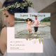 Um casamento fotográfico Salve o Cartão de Anúncio de Data Boho projetado com sua foto favorita do casal. O texto frontal inclui: Salvar a Data e a Noiva e os primeiros nomes do grupo. O texto do verso inclui: os nomes do cheio da Noiva e do Groom, a Data de Casamento e detalhes adicionais; com sotaques florais cor-de-rosa suave. Para personalizar, basta inserir sua imagem no nosso modelo, substituindo a foto de exemplo. Clique em Preencher para cobrir o espaço. O texto permanece no topo da foto. Em seguida, insira o texto no modelo, substituindo a amostra. É rápido e fácil. Não se esqueça de ver toda a Coleção de Casamentos de Estilo BoHo Rosa Espelho e Verde, Elegante.
