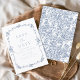 Anuncie seu dia especial com um floral inspirado na Vitoriana, salve a data em elegante azul empoeirado. Este design de inspiração francesa apresenta padrões florais complexos que evocam romance e sofisticação do eterno. A cor azul suave e poeirenta adiciona um toque sereno e refinado, perfeito para dar o tom de um casamento clássico e elegante. Ideal para casais que buscam um estilo gracioso, mas único, isto salva a data combina o charme de vintagem com a beleza moderna, garantindo que seus convidados antecipem uma celebração verdadeiramente especial.