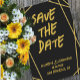 Casamento Elegante minimalista salva a data com quadro geométrico e tipografia clássica
