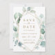 Esse casamento salva a data do convite... pintou o eucalipto de aquarela e as folhas verdes botânicas com uma estrutura geométrica dourada.