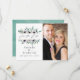 Cartões de aviso de casamento com eucalipto geométrico moderno e flores de papoula em tons pastéis com moldura geométrica dourada e verso com lavagem de aquarela em menta.