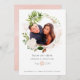 Convite de casamento moderno com vegetação em aquarela, com flores rosa e dourado rosa em uma moldura geométrica.