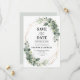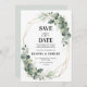 Casamento elegante e moderno de primavera / meio-verão salve o cartão de data com um buquê de folhas verdes com cor aquosa suave / folhas botânicas / eucalipto e estrutura geométrica dourada. Por favor, encontre mais designs e variações na minha loja de "blisswedingpaperie". E fique à vontade para me contactar para mais personalizações ou itens correspondentes.