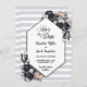 Este elegante enfumaçado preto de aquarela floral geométrico listrado cartão salva-vidas combina a beleza do eterno preto com o delicado atrativo dos florais de aquarela, criando uma notificação de casamento verdadeiramente encantadora que estabelece o tom perfeito para o seu futuro evento. O texto personalizável permite personalizar o cartão com facilidade.