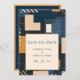 Design abstrato geométrico moderno com blues, cremes "Salvar a Data" com sotaques dourados como cores. É perfeito para o seu evento especial. Só uma carta linda para este tempo especial na sua vida. Obrigados por me permitir compartilhar sua alegria. 100% de satisfação do cliente com o "Zazzle"