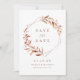 No outono moderno, salve-se o cartão de data com a cor da água rústica, cor botânica de outono, verde e folhas falsas de folha de cobre e estrutura geométrica, simples e elegante, excelente para o casamento rústico no outono, casamento botânico no inverno. Ver todas as peças correspondentes na coleção