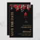 Capture o romance sombrio de um casamento gótico com nosso design de Save the Date de casamento gótico assombrosamente belo. Contra um fundo de preto meia-noite, uma vela vermelha impressionante bruxuleia de forma sinistra, lançando seu brilho sinistro sobre um leito de rosas vermelhas como sangue. Essa imagem cativante incorpora a essência do charme gótico, oferecendo um prelúdio perfeito para um casamento repleto de mistério e encantamento.