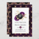 Casamento gótico de Crimson vermelho salve o cartão de data com rosas ornamentados e aranhas em sotaque de roxo, preto e ouro.