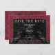 Traga seus convidados para um mundo de elegância escura e encantadora com nosso casamento gótico vintage salve o cartão de data. O fundo profundo e envelhecido do vinho burgundy dá palco a um contraste impressionante, à medida que o texto branco em negrito emerge de intrincadas caixas de texto pretas. No ápice deste convite, uma fronteira gótica tridimensional adornada com uma raia negra real captura a essência do mistério e do romance. O dorso é enfeitado com duas videiras interligadas de rosas pretas formando sutilmente um coração em torno de dois abraços, o que adiciona um toque de fascínio dramático. Liberte a magia e dê o tom para um dia de casamento inesquecível. Este cartão faz parte da Suíte de Casamento de Rosas Negras Gótica Raven & Black criada pela Simplesmente Farmhouse Press.