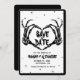 Prepare-se para capturar seus hóspedes com nosso Casamento Celestial de Halloween Salve os cartões de data. Perfeito para casais que estão planejando um casamento que abraça o misterioso fascínio da época, eles salvam as datas misturam elegância gótica com encanto celestial.