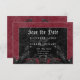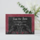 Traga seus convidados para um mundo de elegância escura e encantadora com nosso casamento gótico vintage salve o cartão de data. O fundo profundo e envelhecido do vinho burgundy dá palco a um contraste impressionante, à medida que o texto branco em negrito emerge de intrincadas caixas de texto pretas. Elementos góticos tridimensionais adoram o design, capturando a essência do mistério e do romance. Liberte a magia e dê o tom para um dia de casamento inesquecível. Criado pela imprensa simplesmente de farmácia.