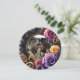 Um belo e charmoso galho floral, Salve o cartão de Data. A frente é enfeitada com belos rosas roxos, engrenagens de ouro e cobre e um modelo para carregar sua foto favorita. Isso é feito em tons dourados, roxos e pretos e tem uma estética gótica. Adicione todas as suas informações de salvamento da data de casamento na parte de trás da área de personalização.