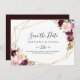 Este casamento horizontal de folhagem floral floral rústica, exceto a data é perfeita para um casamento simples. A design apresenta flores e folhagem lindas e coloridas desenhadas à mão, elegantemente organizadas em buquês atraentes, enfeitando a armação geométrica dourada.