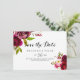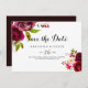 Este casamento floral floral, sangrento e robusto, exceto a data é perfeita para um casamento simples. O design apresenta flores cor-de-água, cor-de-rosa, esbranquiçada, vermelha, burgundy e bordo, com folhagem verde.