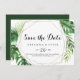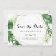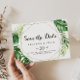 Este casamento horizontal tropical de destino geométrico exceto a data é perfeita para um casamento verde. O design apresenta palma verde-aquarela pintada à mão e folhas de bananeira bem organizadas em belos buquês, enfeitando um quadro geométrico dourado.