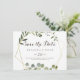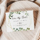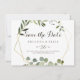 Este casamento horizontal verde-marrom-dourado geométrico, exceto a data é perfeita para um casamento moderno. A design apresenta lindas folhas verdes pintadas manualmente em um fundo castanho, enfeitando um quadro geométrico dourado.