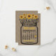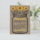 Esses cartões rústicos de save-the-date de casamento do calendário de setembro de 2020 têm uma moldura de jarro de mason, uma faixa e girassóis em aquarela, tudo em um fundo de burlap falso. Esses cartões simples e elegantes são perfeitos para um tema de casamento country. Destaque a data do seu casamento com o ícone de coração. Use os modelos fáceis para adicionar os nomes da noiva e do noivo, a data, o local e mais. DICA: Quer editar o restante do texto ou mover o coração para outra data? "Personalize ainda mais" para fazer alterações mais detalhadas.