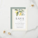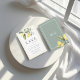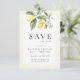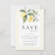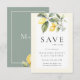 Este lindo Mediterrâneo inspirado no "Salve a Data Card" apresenta limões de aquarela com elegante verde e delicadas flores de jasmim e enquadrado numa borda amarela de manteiga. Sábio clássico verde no verso com suas iniciais. Uma escolha elegante para um primavera/verão, ao ar livre, tema da natureza ou casamento de destino.