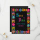 Faça uma primeira impressão arrojada com este moderno mexicano Save the Date Card, com um quadro floral vibrante colocado sobre um fundo preto profundo. Inspirado pela tradicional arte popular mexicana, o design rebenta com cores vivas, vermelhos ricos, amarelos ensolarados, pinças arrojadas e turquesa vívida, criando um olhar festivo mas sofisticado. O impressionante contraste destaca seus nomes e datas com estilo, definindo o tom para um cheio de celebração de amor, cultura e cor. Perfeito para casais que querem anunciar seu grande dia com personalidade e elegância.