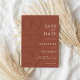 Personalize facilmente os cartões de salva data do seu casamento com este modelo editável. Características: design de tipografia elegante e minimalista em cor terracota.