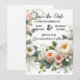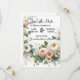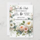 Anuncie seu dia especial em estilo com este elegante floral branco e esbranquiçado salve o cartão de data, com flores de cor d'água de pêssego macio e verde delicado. Perfeito para casamentos românticos, jardins, rústicos ou de primavera, essa design combina elegância minimalista com um sentimento botânico eterno. Este cartão personalizável é ideal para casais que procuram um anúncio de casamento chic e personalizado. Edite facilmente os seus nomes, e a data do casamento, e para criar uma manutenção única que os seus hóspedes irão amar.