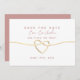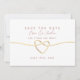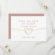 Casamento elegante e moderno de rosa empoeirado salve o cartão de data com uma design minimalista com tipografia romântica e um coração de corda de ouro pelo centro. Tonalidades cor-de-rosa suave combinadas com branco clássico criam um anúncio de eterno e na moda. Perfeito para casais planejando um casamento contemporâneo com detalhes simples e sinceros. Personalize com seus nomes, data e mensagem de casamento para dar o tom para seu grande dia.