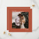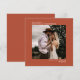 Este simples casamento Guardar o cartão de data apresenta um elegante design quadrado com um fundo de cor terracota ou argila e texto simetricamente colocado que é justificado no topo e na direita, justificado no fundo. Carregue sua foto e avise seus convidados sobre sua próxima data de casamento.