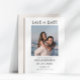 Anuncie seu próximo dia com uma cartão com fotos que captura a beleza da simplicidade. Apresentando uma paleta branca e preta limpa, isso salva a data misturando a estética moderna com uma sensação de eterno. Uma maneira refinada de compartilhar sua história de amor e dar o tom para uma celebração sofisticada.