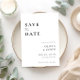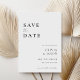 Casamento moderno salva o convite de data com design de tipografia mínima em preto e branco. Personalize facilmente com todas as suas informações para cartões salve a data de casamento personalizados.
