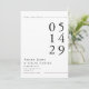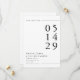Anuncie seu grande dia com a elegância do eterno usando este moderno preto e branco salve o cartão de data. A design minimalista e a tipografia ousada criam um olhar limpo e na moda que dá o tom para a sua próxima celebração. Perfeito para casais que apreciam a simplicidade com sofisticação, este cartão garante que seus convidados marquem seus calendários com estilo.