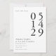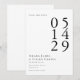 Anuncie seu grande dia com a elegância do eterno usando este moderno preto e branco salve o cartão de data. A design minimalista e a tipografia ousada criam um olhar limpo e na moda que dá o tom para a sua próxima celebração. Perfeito para casais que apreciam a simplicidade com sofisticação, este cartão garante que seus convidados marquem seus calendários com estilo.
