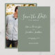 Este Cartão de Convite à Data de Casamento apresenta um design elegante, moderno e mínimo tipográfico com um esquema de cor verde-azeitona. Pronto para personalizar com os detalhes do seu dia especial e adicionar sua própria foto à parte traseira do cartão, navegue no Conjunto Mínimo Elegante Verde Oleícola para ver os itens de papelaria correspondentes.