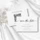 Este elegante cartão de salvamento de casamento preto-e-branco é perfeito para um casamento moderno. O simples design apresenta uma caligrafia preta elegante sobre um fundo branco limpo. O cartão também inclui um código QR para o site de casamento no verso.