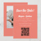 Moderno e elegante, este cartão de salvar a data do casamento em rosa coral é personalizável com código QR para o site do seu casamento na frente, e uma foto de noivado personalizada no verso. Altere as cores deste cartão clicando em "personalizar este modelo", em seguida, "editar usando a ferramenta de design". Se precisar de ajuda para fazer qualquer alteração, por favor, envie uma mensagem para o designer.