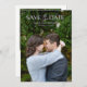 O casamento moderno salve o cartão de data com os detalhes do seu evento sobre a sua foto vertical favorita com as palavras "SAVE the DATE" em uma combinação de um roteiro elegante e fonte moderna sans serif. A parte traseira tem uma imagem adicional e um código QR opcional. Você pode remover o código QR na ferramenta de edição de design.