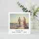 Um quadrado único e divertido guarde as datas que imitam o aspecto de uma fotografia instantânea retrorativa com os seus nomes e data numa letra de escrita manual. A imagem tem um filtro sobre ele para lhe dar uma aparência antiga (o filtro pode ser alterado ou removido clicando no botão personalizar). Esta design legal e moderna é perfeita para o casal minimalista ter um casamento casual.