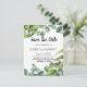 Dólar de prata aquosa e ramificações de eucalipto salgueiro floridas com padrão correspondente no verso Salve o cartão Data. Personalize o estilo, a cor e o tamanho da fonte do texto.