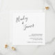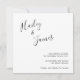 Simples preto e branco Salve o cartão de Data com seus nomes em um roteiro manuscrito elegante no canto superior esquerdo e seus detalhes de casamento no alinhamento direito no canto inferior direito. A letra chic da mão acrescenta um toque romântico a esta design minimalista.
