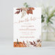 Moderno rústico elegante flores botânicas aquarela, abóbora, folhagem e folhas secas criando um cartão chic de casamento de outono com foto de noivado personalizada, uma caligrafia de escrita manual trendy e paleta de cores terracota bege terroso. ++++++++++++++++ Personalize com sua foto e código QR para o seu site.