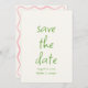 Este casamento moderno e retrô minimalista Salve a Modelo de Data é excelente para você. Se você estiver procurando um Modelo de Data de Casamento bonito, elegante e fácil de personalizar. Um casamento muito elegante e simples com guião verde salve a data. O que apresenta manuscrito verde mínimo, salve a data em um plano de fundo leitoso puro. E dois anéis desenhados à mão e uma moldura cor-de-rosa ondulada. Pegue este casamento de na moda, salve a data e faça seus convites realmente comprometidos.