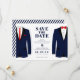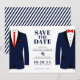 Deixe todos saberem que vocês dois fixaram uma data para o casamento com este cartão moderno de save the date com dois ternos navy. Personalize adicionando seus nomes, data e local do casamento.