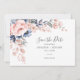 Casamento floral rosa elegante salve o cartão de data que você pode personalizar facilmente com seus detalhes clicando no botão "Personalizar". Apresenta a tipografia popular moderna com texto de script a preto sobre fundo branco DICA: produtos correspondentes disponíveis abaixo para sua conveniência