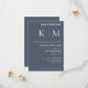 Eleve o seu casamento com o nosso moderno lembrete de 'Salve a Data' de casamento azul e branco. Ele apresenta um monograma e fonte moderna, é o epítome do estilo e da conveniência. Personalizável: personalize com os seus detalhes. Faça do seu casamento memorável do início ao fim. Veja a nossa Coleção para um casamento temático Azul e Branco!