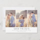 Casamento simples e na moda de design de colagem de fotos guarde as datas. Compartilhe três das suas fotos de noivado favoritas com este casamento de colagem de fotos, salve o cartão.